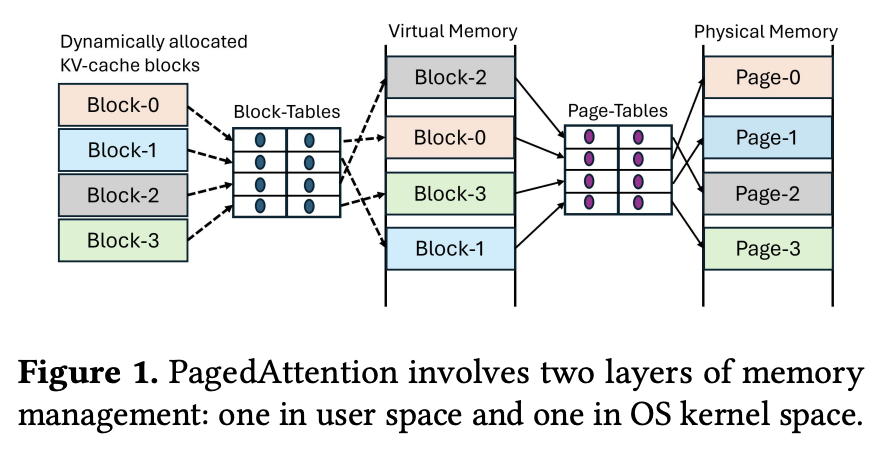 vLLM의 PagedAttention은 이를 블록 단위로 나누어 동적으로 할당하는 방식으로 해결했다.